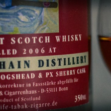 Vor einem guten halben Jahr entdeckte ich in meinem örtlichen kleinen Whiskyladen eine kleine unscheinbare Flasche mit Whisky aus der Brennerei Bunnahabhain aus Oloroso-Fässern, den ein Weinhändler aus Koblenz importiert, in frische Bordeaux-Fässer gefüllt und dann für das Bonner Pfeifen- und Cigarrenhaus auf kleine 350ml-Flaschen gezogen hat. Und der war eine Granate! Nun hat … Mehr Bunnahabhain Heavily Peated 2006, 50%